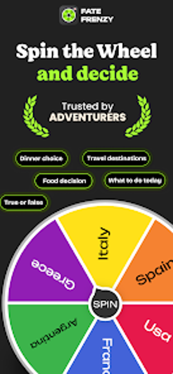 Fatefrenzy - Spin the Wheel adalah aplikasi Android yang mengubah cara pengambilan keputusan menjadi hiburan yang menyenangkan. Aplikasi ini memungkinkan pengguna untuk memutar roda keputusan dan merekam reaksi mereka, menjadikannya konten yang dapat dibagikan di media sosial. Dengan berbagai tema roda yang tersedia, pengguna dapat memilih dari ratusan opsi yang mencakup tantangan, pilihan makanan, dan rencana akhir pekan. Selain itu, aplikasi ini mendukung kolaborasi dengan mengundang teman untuk berpartisipasi dan bersaing dalam tantangan, serta melihat peringkat pengguna dalam komunitas Fatefrenzy.